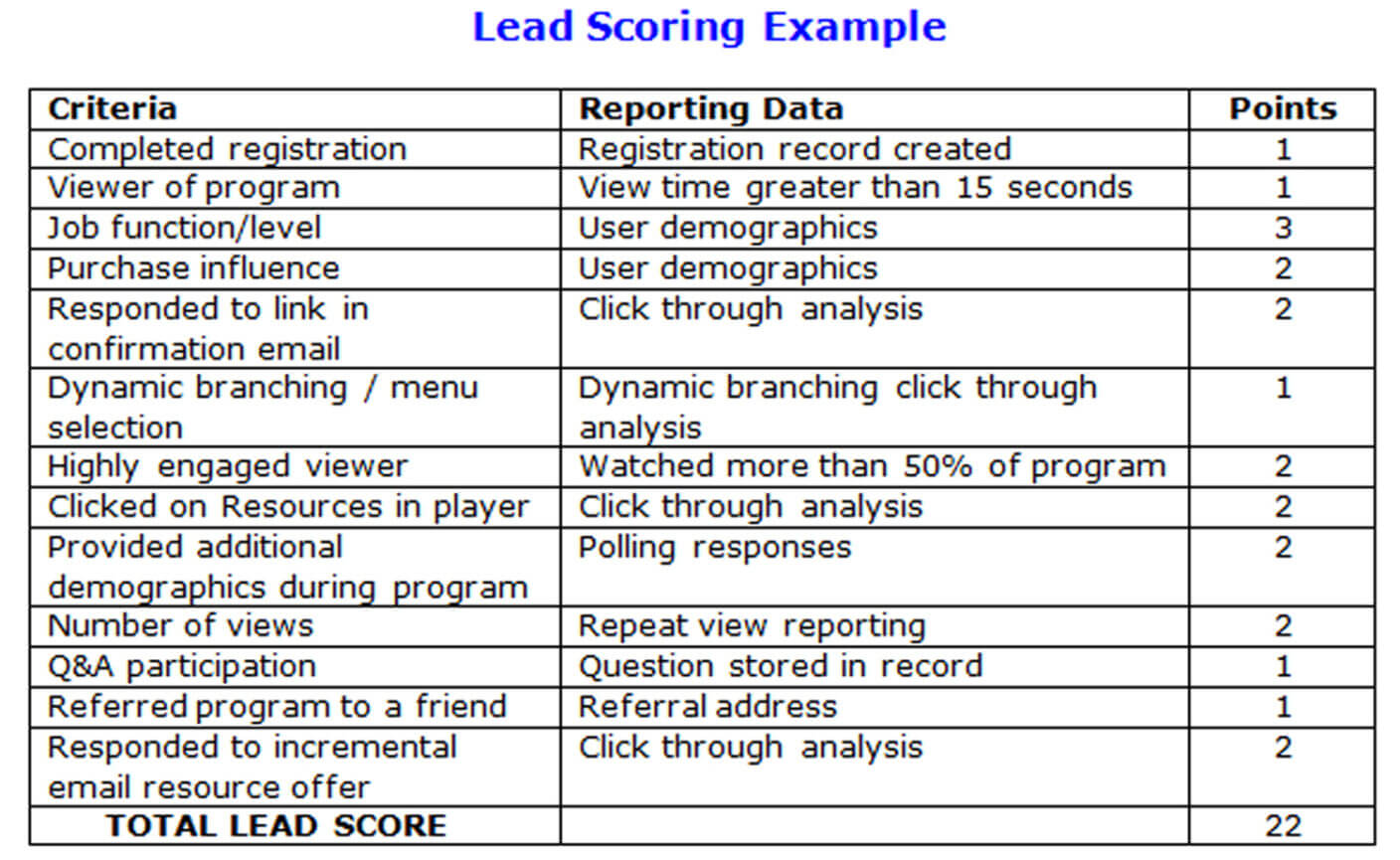- Lead data should be up to date and accurately tracked, listing all activity and the background data gathered during the nurturing process to help sales close the deal